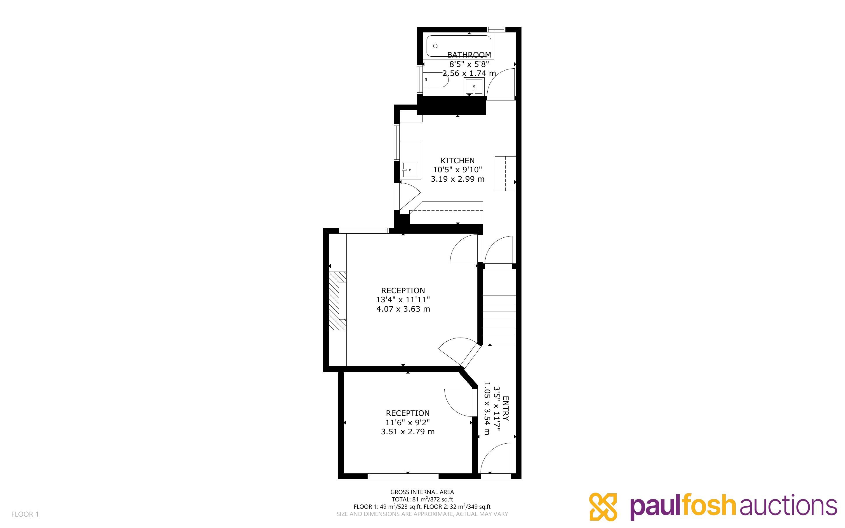 Ground Floor: Entrance, 2 reception rooms, kitchen, bathroom