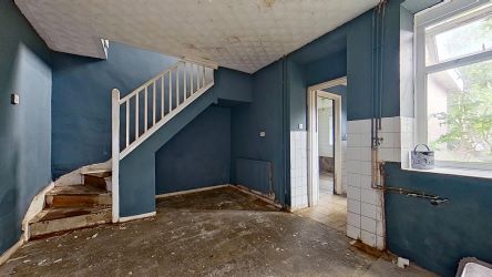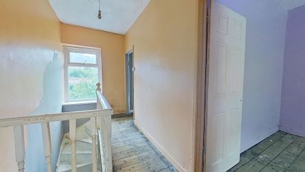 A 3 storey mid terraced house having been cleared in readiness for refurbishment. Benefitting from far reaching views at the front and rear. Accommodation includes lounge/dining room, kitchen area, utility room, three bedrooms, bathroom area. We are informed by the owner that behind the kitchen is a void area which could be knocked through to create an additional area/room (not inspected).