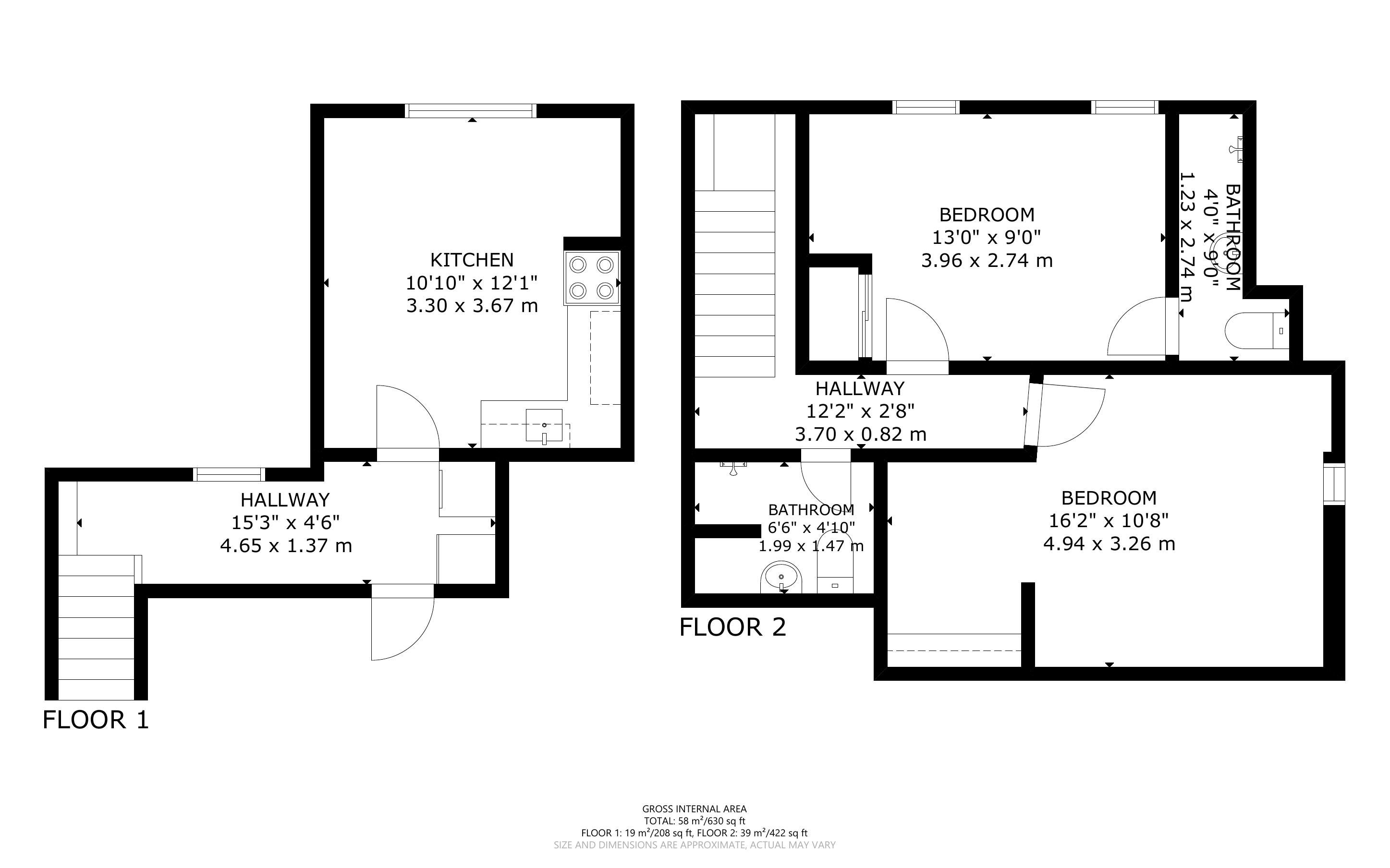 The flats benefit from UPVC double glazed windows and gas central heating (not tested) and have fitted kitchens and bathrooms.