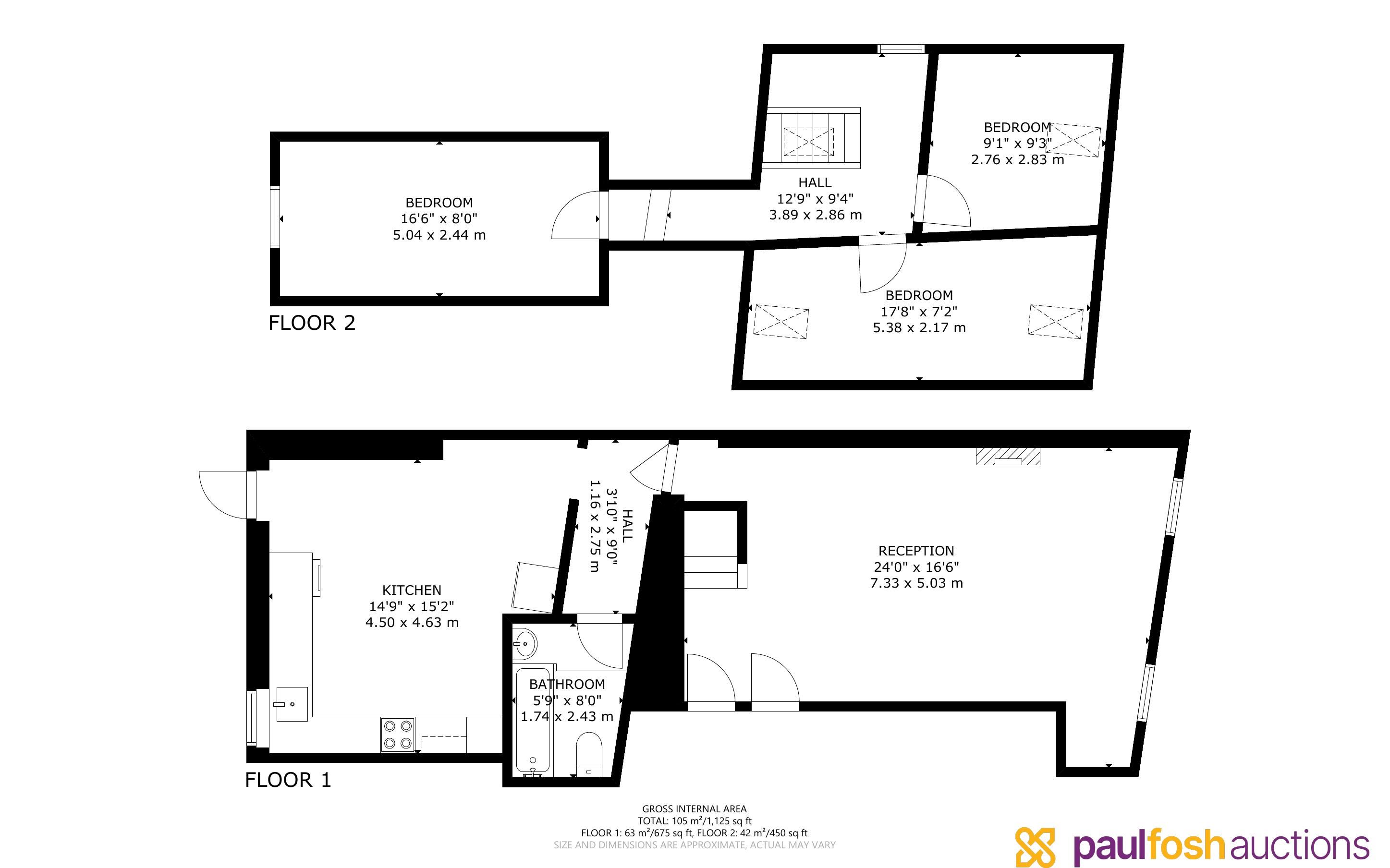 The two flats are let for £550 pcm for the two but anticipate £450 pcm after updating.