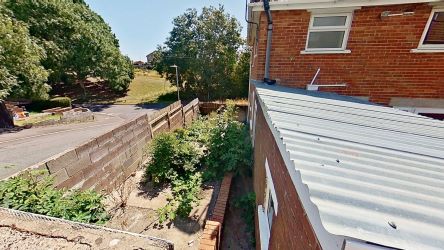 Outside Front side and rear gardens with gate access to real garden suitable for a number of vehicles and storage shed