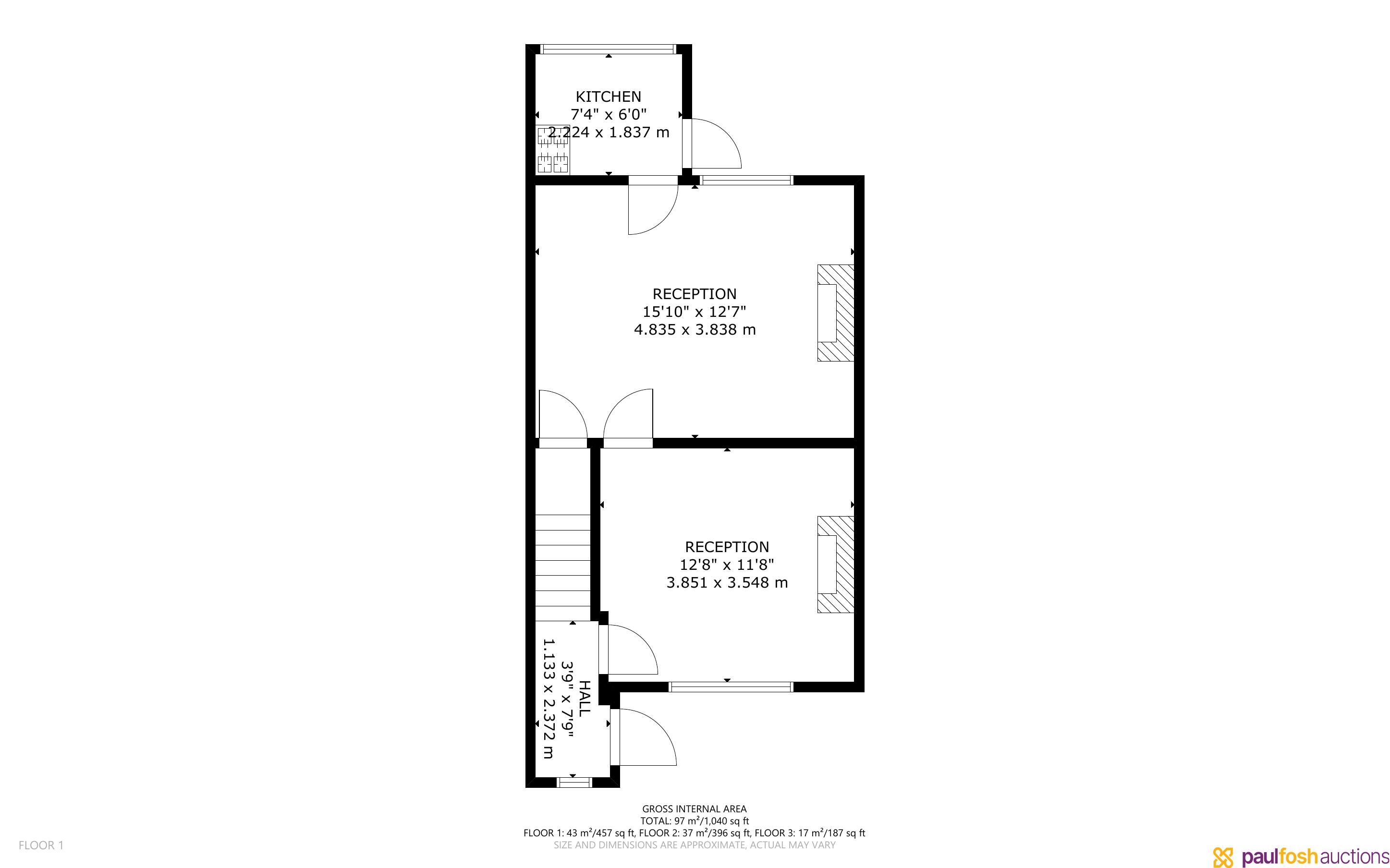 Ground Floor: Entrance, Reception 1 & 2, Lean to (former kitchen)