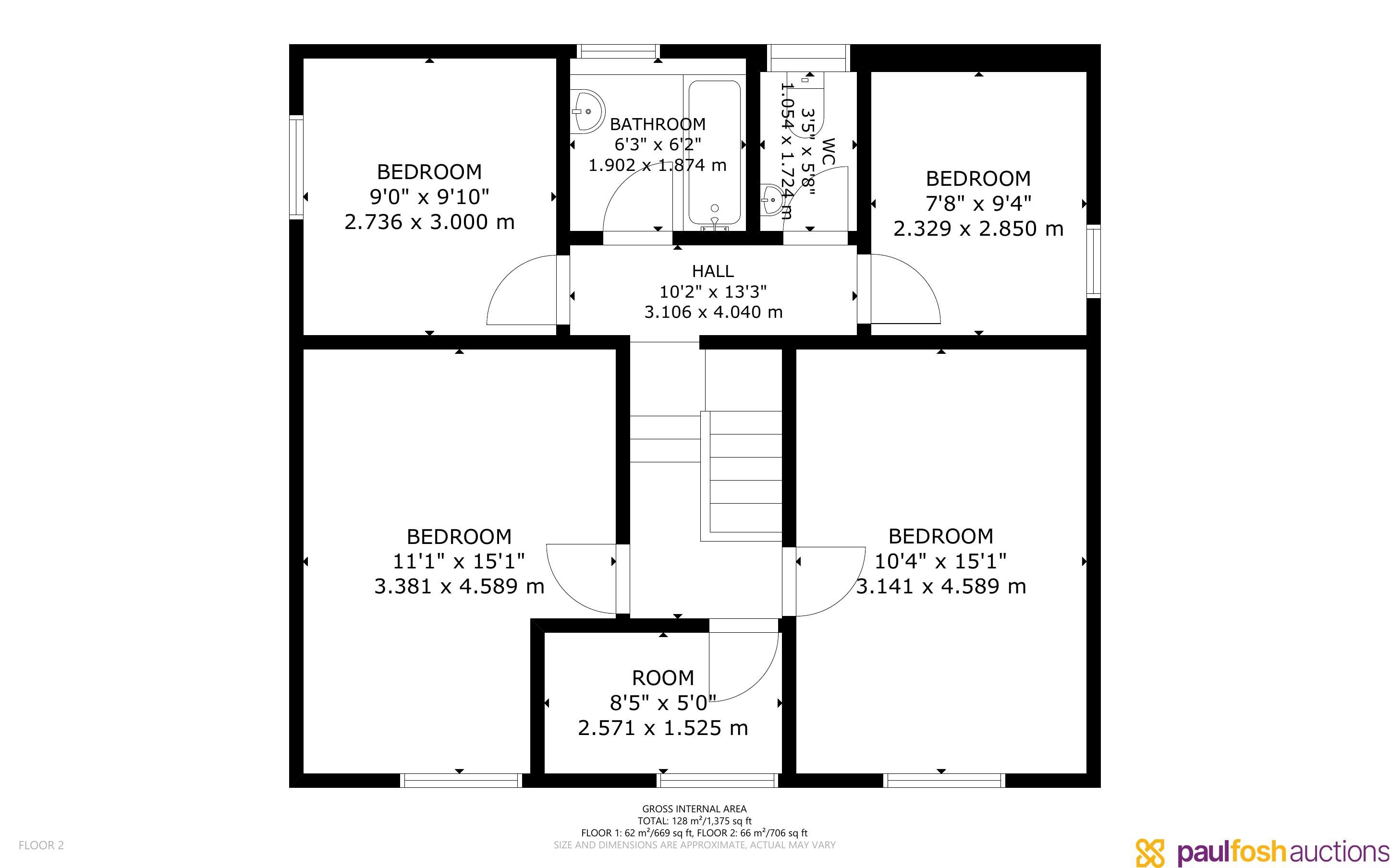 First Floor: 3 bedrooms, study, bathroom, WC, 2 attic rooms