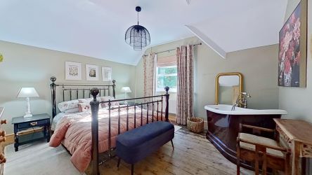 The main house has a welcoming porch that leads into a dining hall with two receptions with a log burner, there is a unique study under the stairs - handy as a home office. One reception opens to a farm house style kitchen with a ground floor WC. Upstairs are two bedrooms served by a family bathroom. The main house has been refurbished to a high standard and there is the option to purchase the furniture separately.