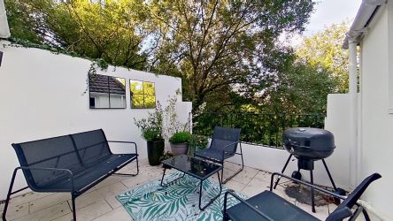 Outside, you can find a walled patio/courtyard with seating and perfect for dining and relaxing in the better weather.