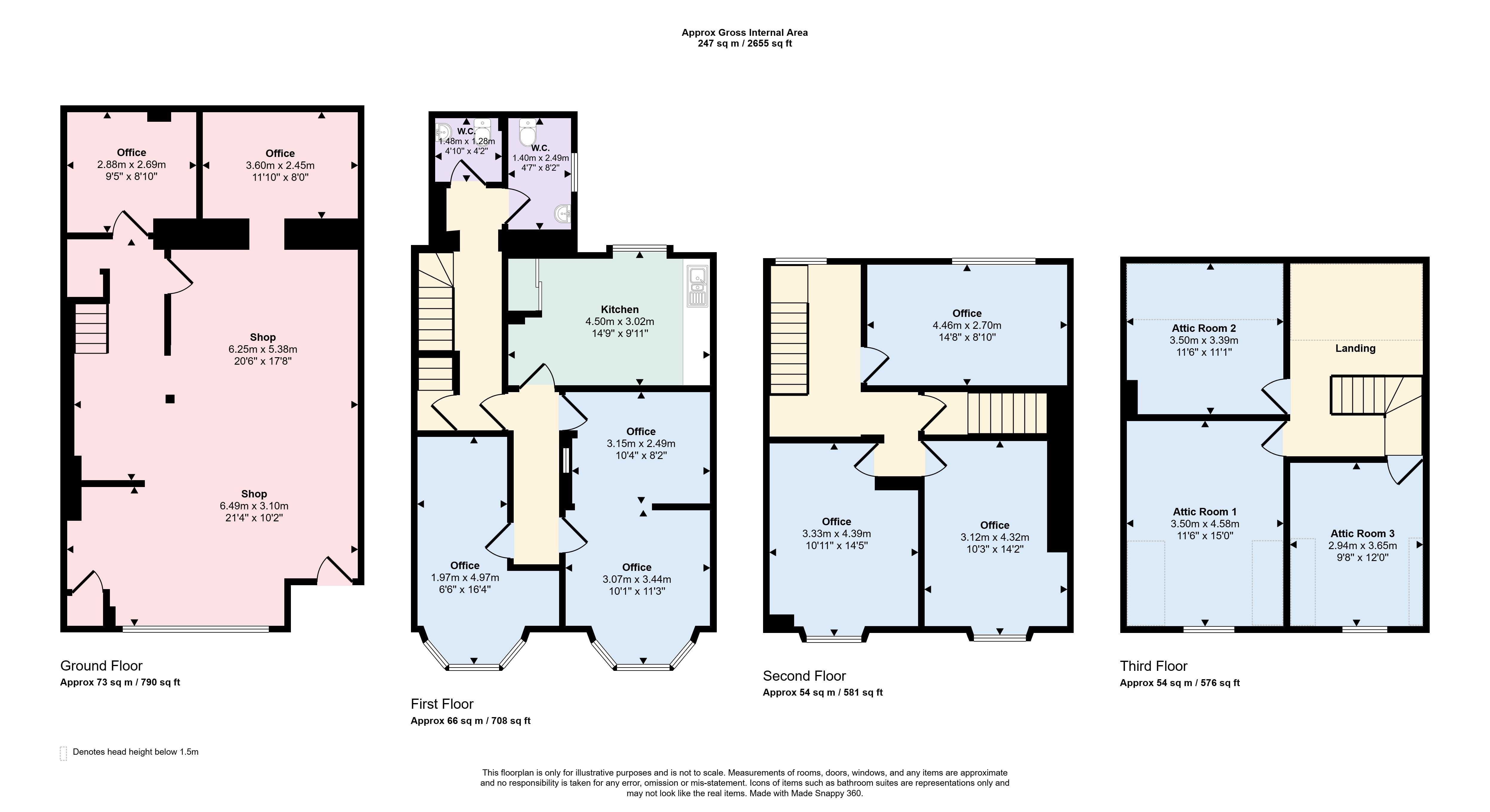 Second Floor: Three office rooms with staircase providing access to the attic with a further three rooms.