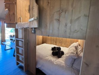 A popular unit for families and couples all year round. Biggest unit on site (sleeps up to 8) great for 2 families or friends that group together. This is not your usual glamping.