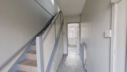 The ground floor offers lounge, kitchen and dining room. To the first floor the property offers three bedrooms and bathroom.
