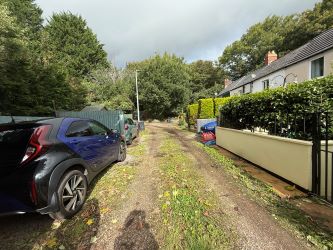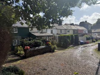 Outside Front garden, parking space on lane opposite property, sloping rear garden (accessed via top road only)