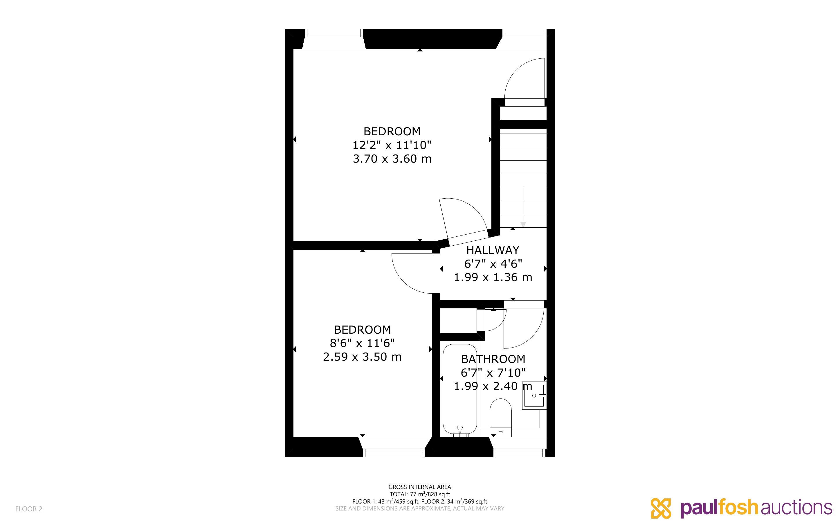 First Floor: 2 bedrooms, bathroom