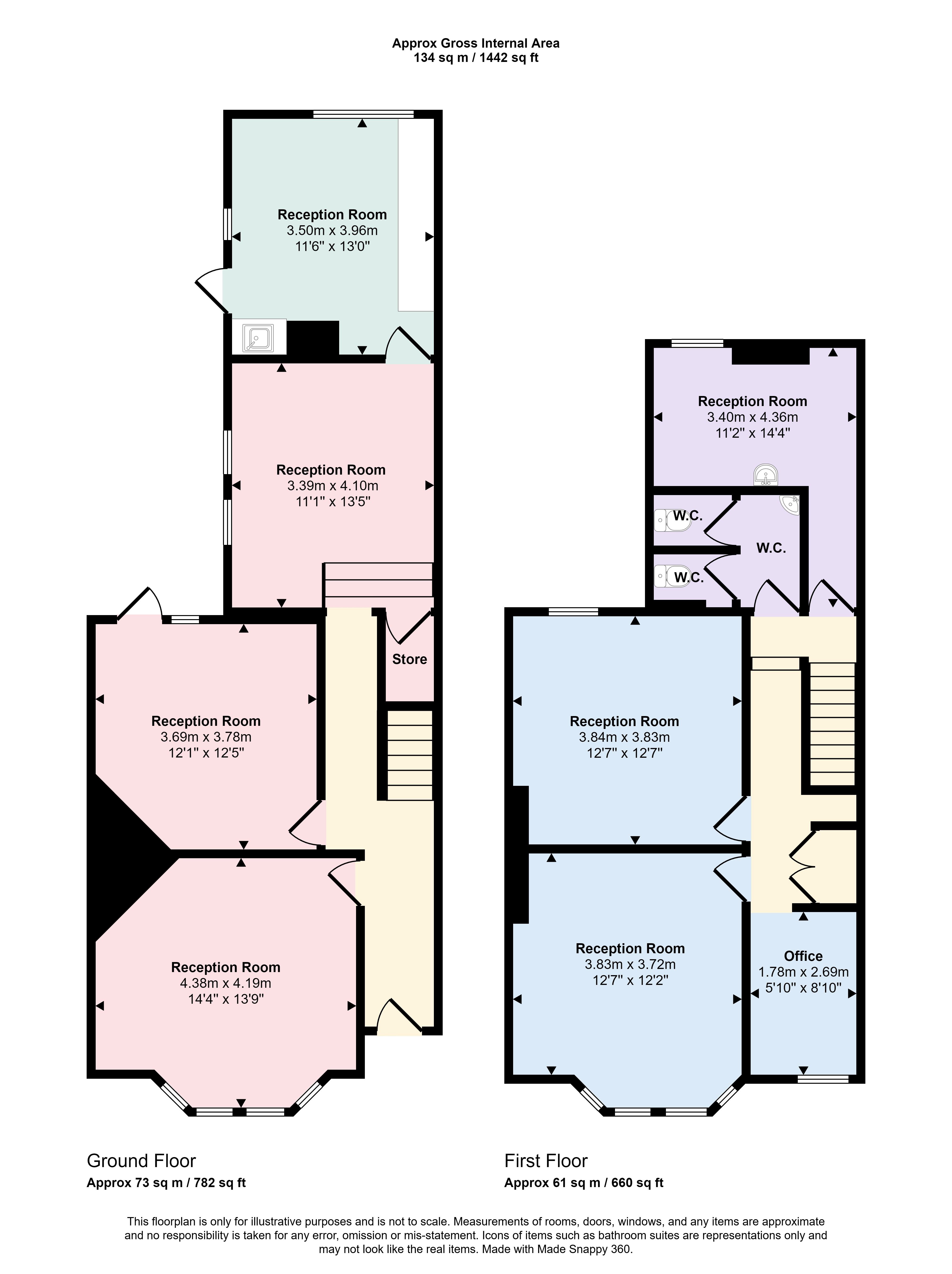 First Floor: Landing, 4 rooms plus WCs x2
