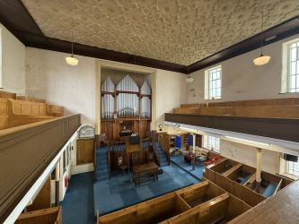 The interior retains many original period features, including decorative ceilings, stained glass windows, wooden pews and organ. The spacious main hall features a traditional gallery with tiered seating and excellent natural light, creating a grand and atmospheric space ideal for conversion, community use, or redevelopment. The church also offers a separate worship room, kitchen, WC and staircase leading to ladies & Gents WC.