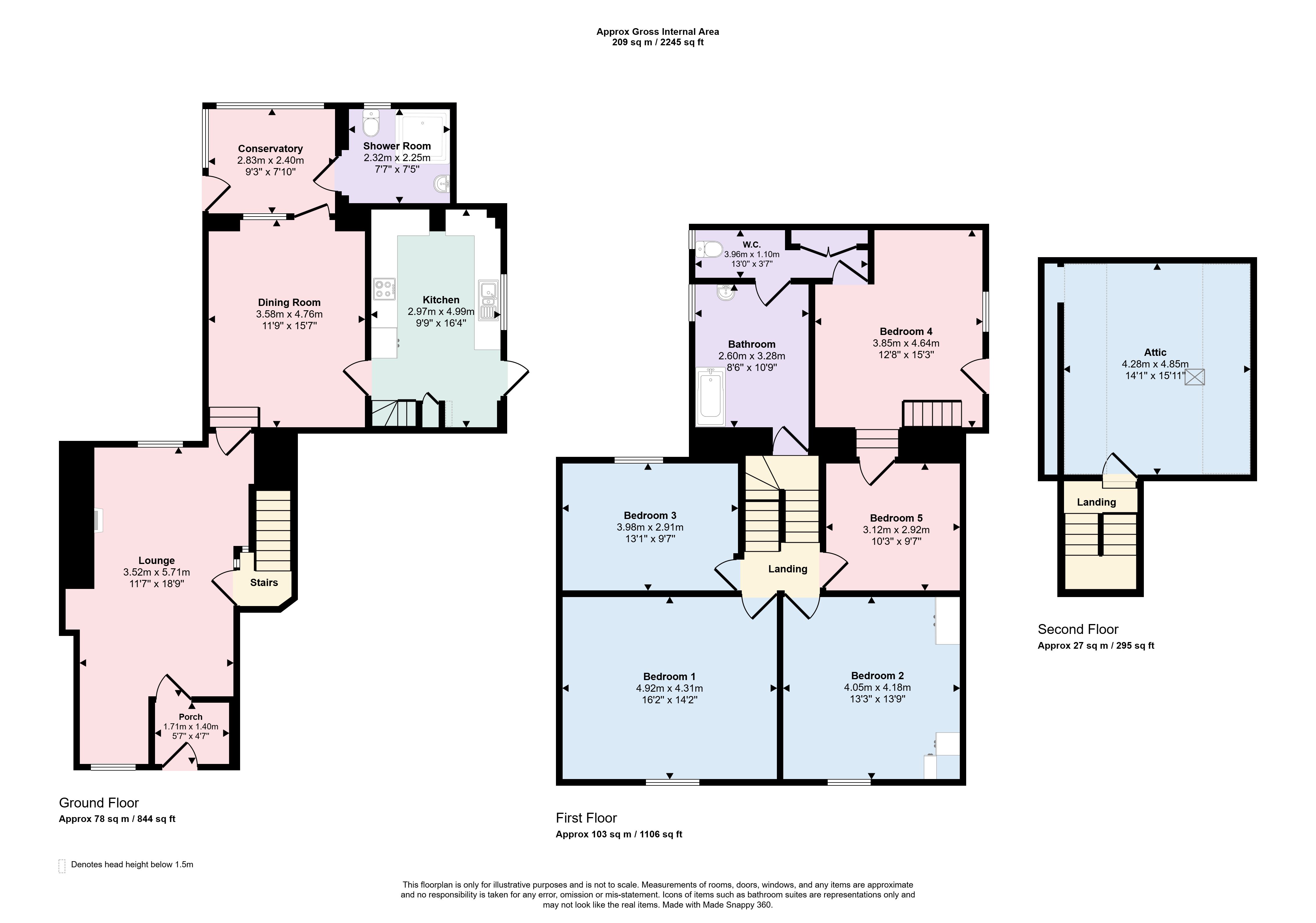 The main house accommodation includes entrance/porch, living room, dining room, kitchen, conservatory and wet room downstairs. Upstairs are four bedrooms, store room, bathroom and attic room. The property further benefits from gas central heating (not tested), UPVC double glazing and a rear garden.