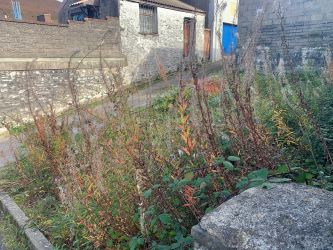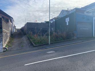 A small rectangular strip of land situated in a residential street siding onto a lane giving access to garages. The land could provide space for a garage subject to the necessary planning consents.