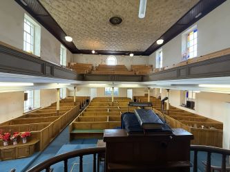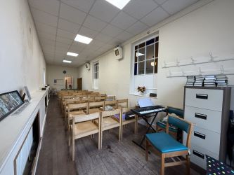 The interior retains many original period features, including decorative ceilings, stained glass windows, wooden pews and organ. The spacious main hall features a traditional gallery with tiered seating and excellent natural light, creating a grand and atmospheric space ideal for conversion, community use, or redevelopment. The church also offers a separate worship room, kitchen, WC and staircase leading to ladies & Gents WC.