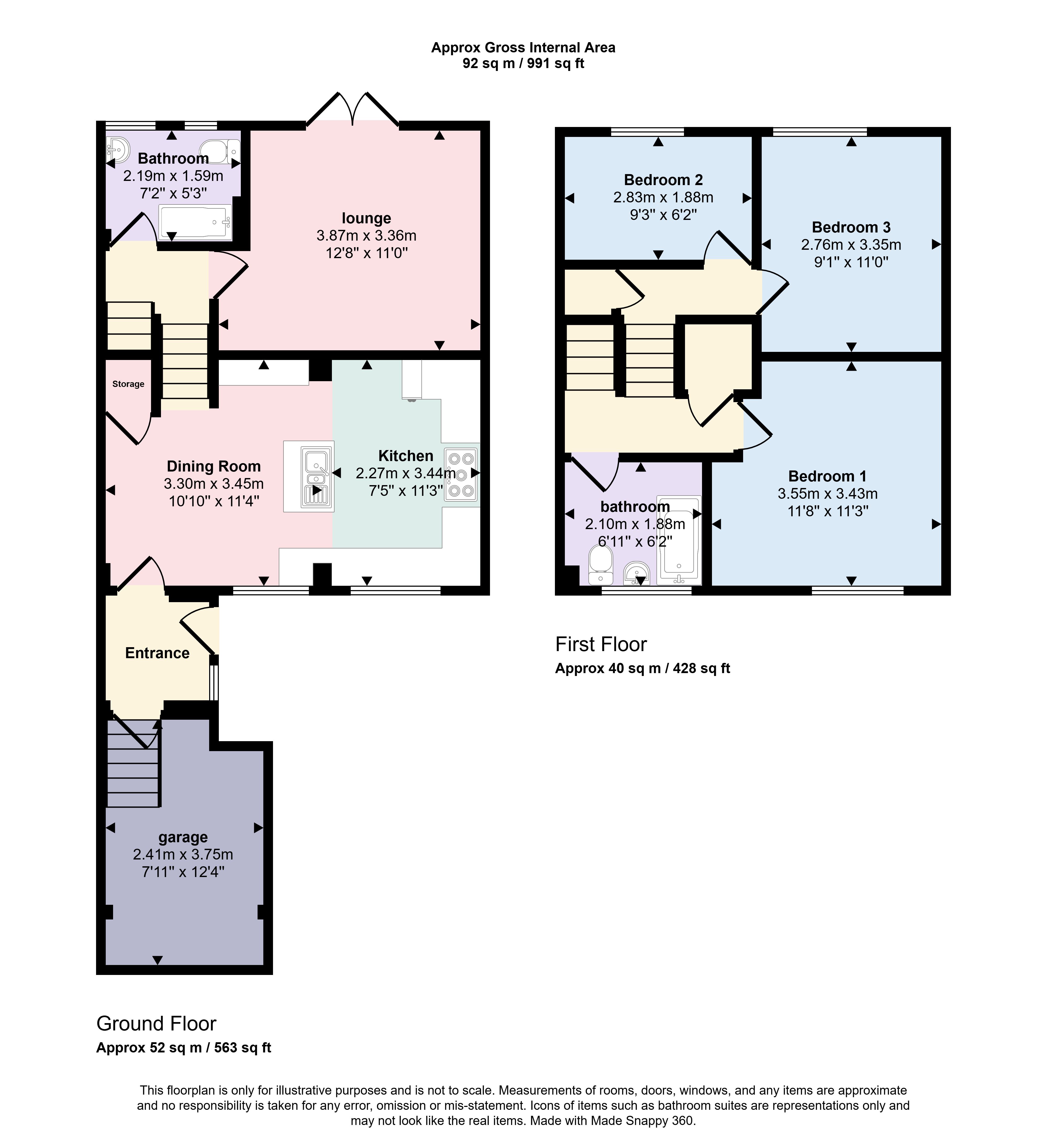First Floor: Three bedrooms, family bathroom