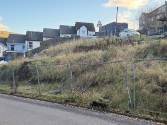 This building plot has outline planning permission for four detached houses plus a twin garage and a single garage. There is an adjacent development nearing completion. The plot is situated in a residential area backing on to a rear access lane to neighbouring garages/houses and benefits from far reaching hillside views.