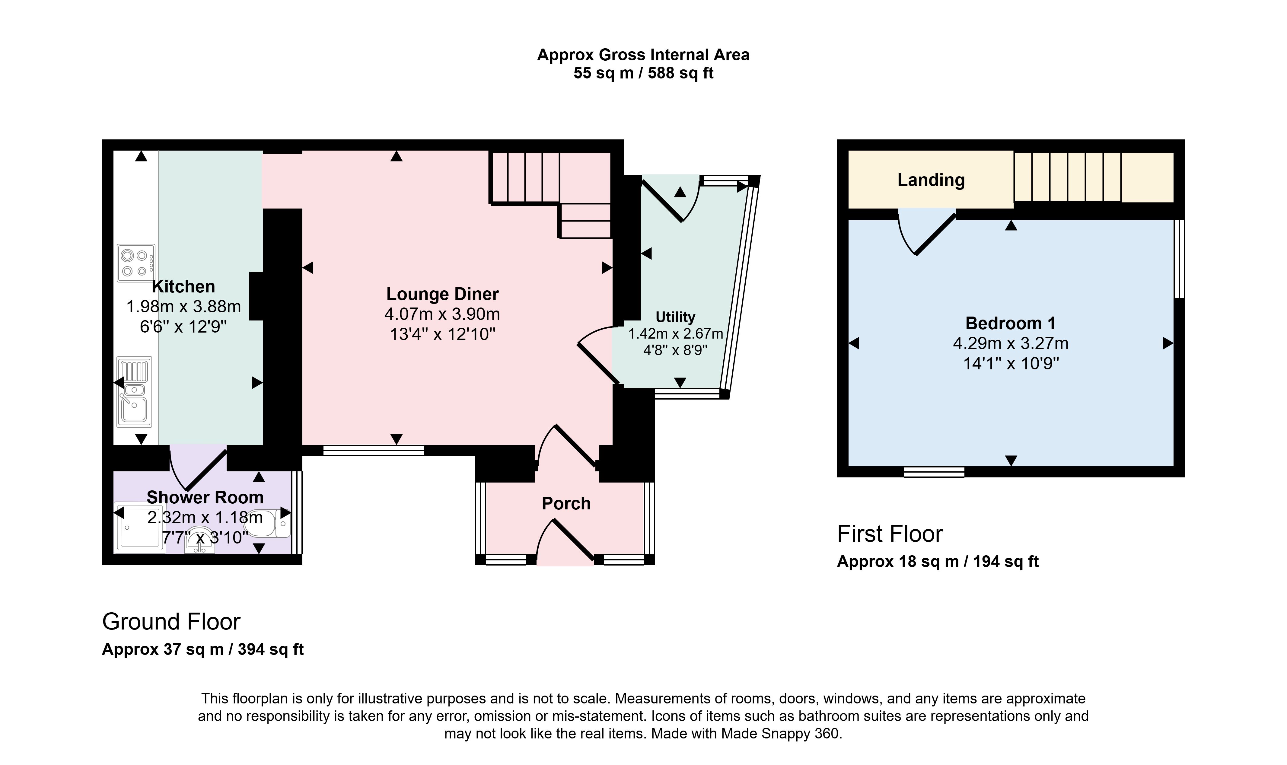 Ground Floor: Entrance porch, lounge, kitchen, shower room, side porch