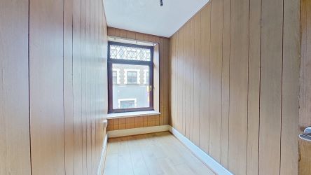 A four storey end of terrace premises. The ground floor is let at £500 to a barber shop. There is a four bedroomed flat on the upper floors, which is currently vacant but could let at £650/700 per a month.