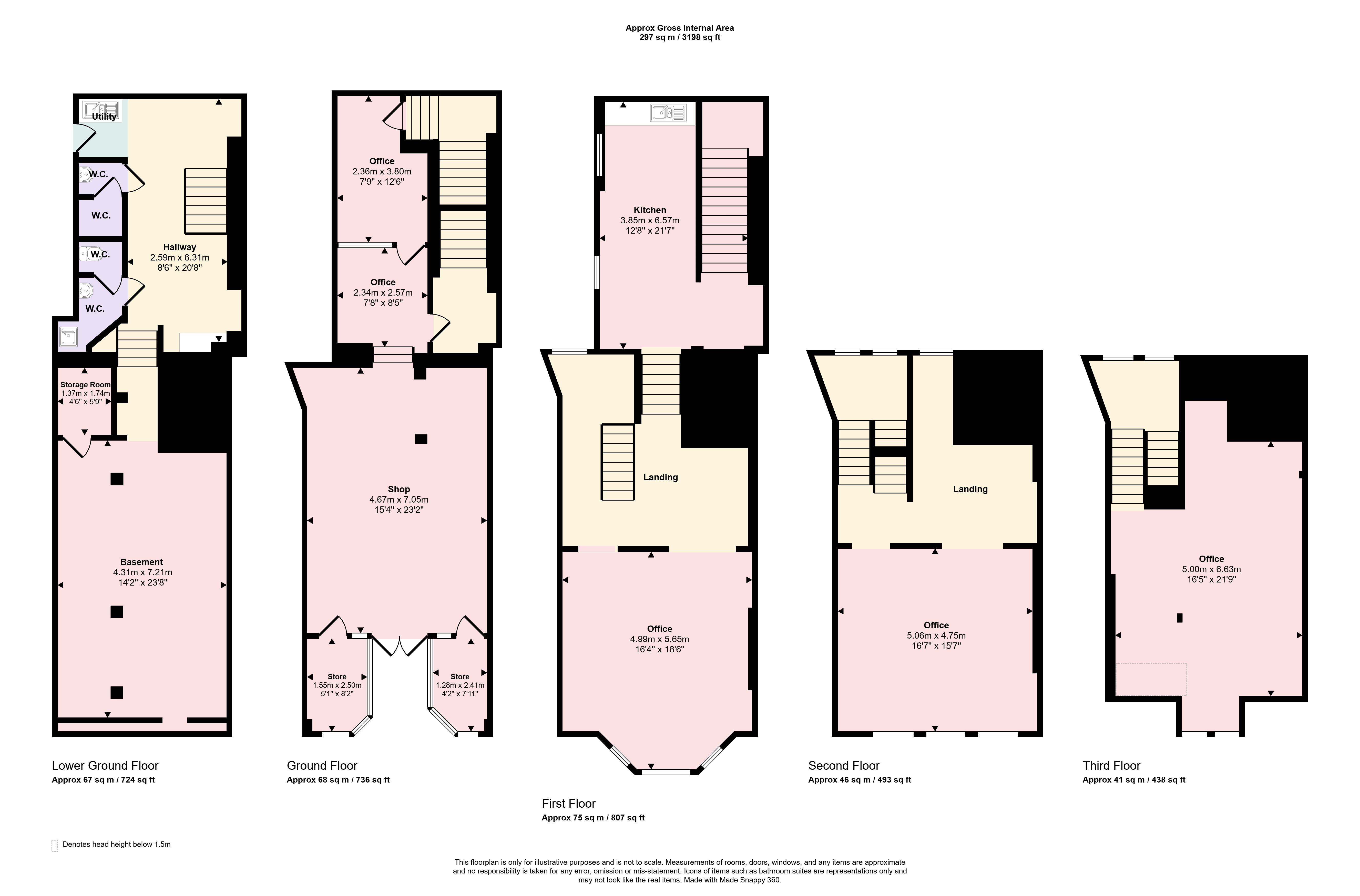 Ground Floor: Retail sales area, office. At the rear of the ground floor is a staircase leading to the basement area