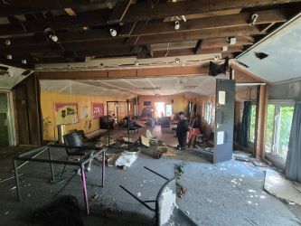 Ground floor Open-plan hall incorporating a stage area, kitchen facilities, and WC provisions.