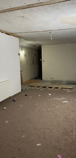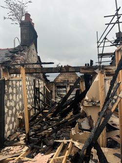 The property is in need of redevelopment following fire damage and is not currently safe for occupation.