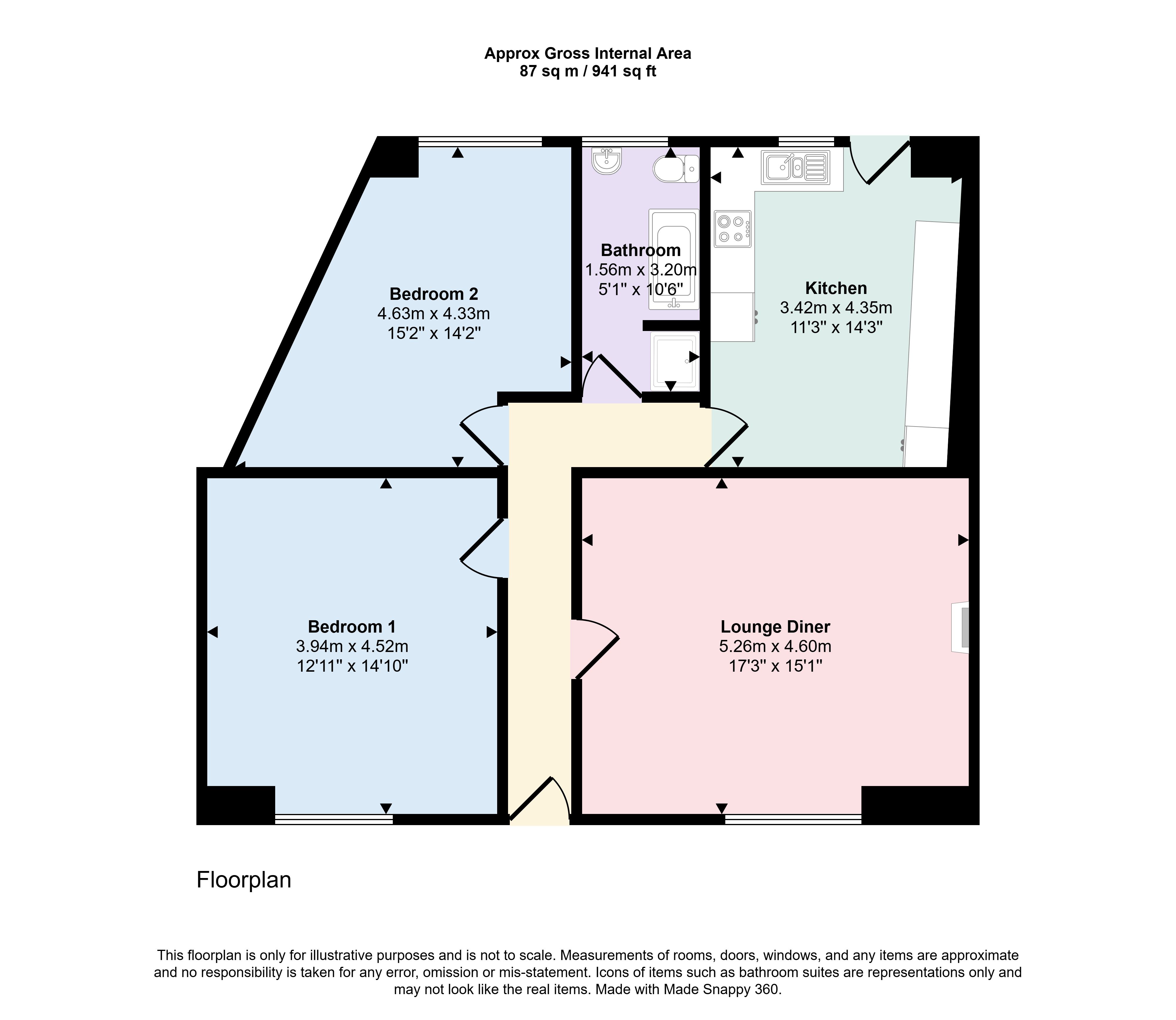 Ground Floor: Entrance hallway, lounge, kitchen, two bedrooms, bathroom