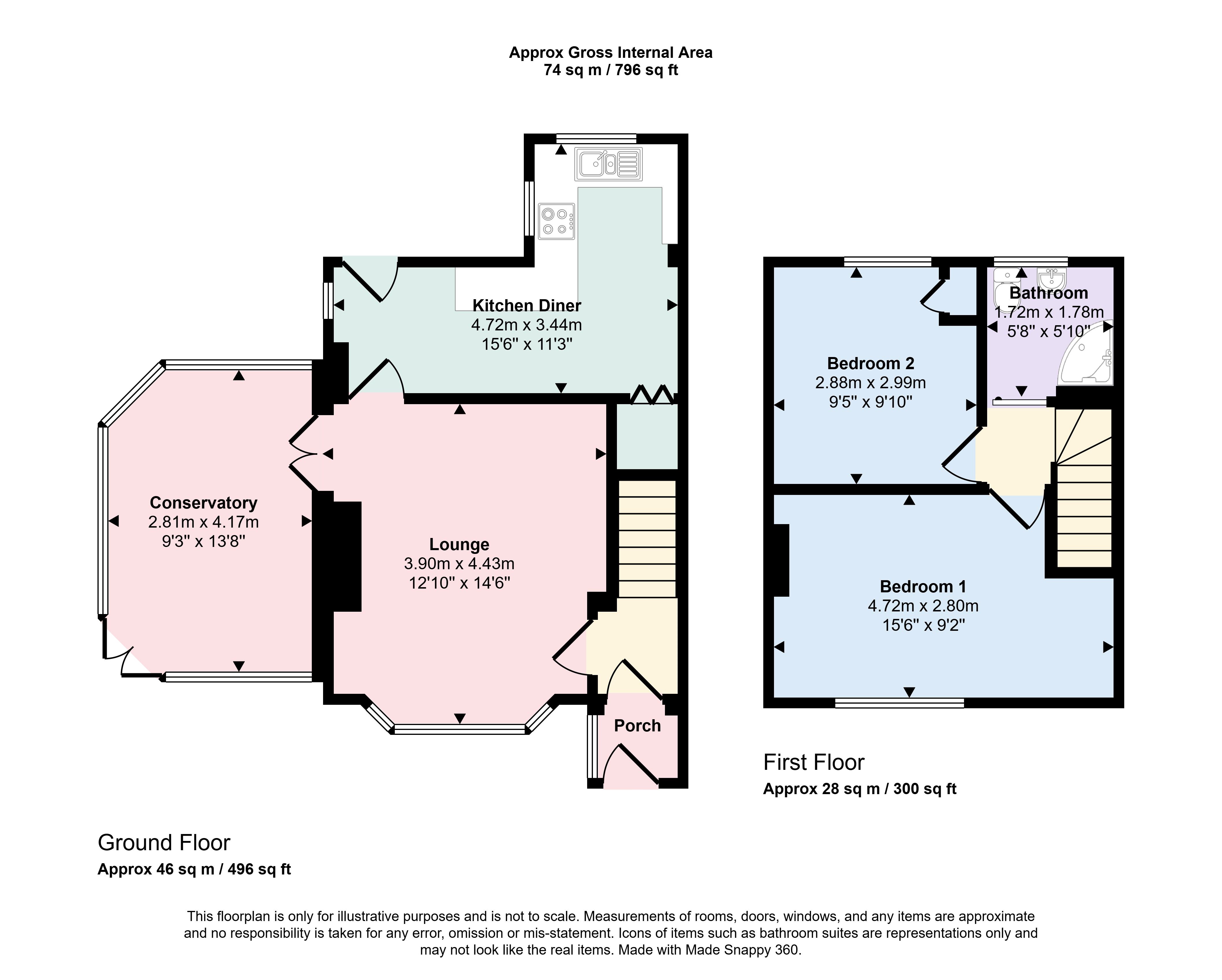 Ground Floor: Entrance porch, lounge, kitchen & conservatory