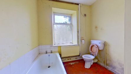 A three storey end of terraced house requiring full renovation, benefitting from far reaching hillside views. The property provides a reception room, kitchen, bathroom and two bedrooms. There gas central heating (not tested). The garden (overgrown) benefits from side and rear access to a rear lane with potential for a garage subject to the necessary consents.