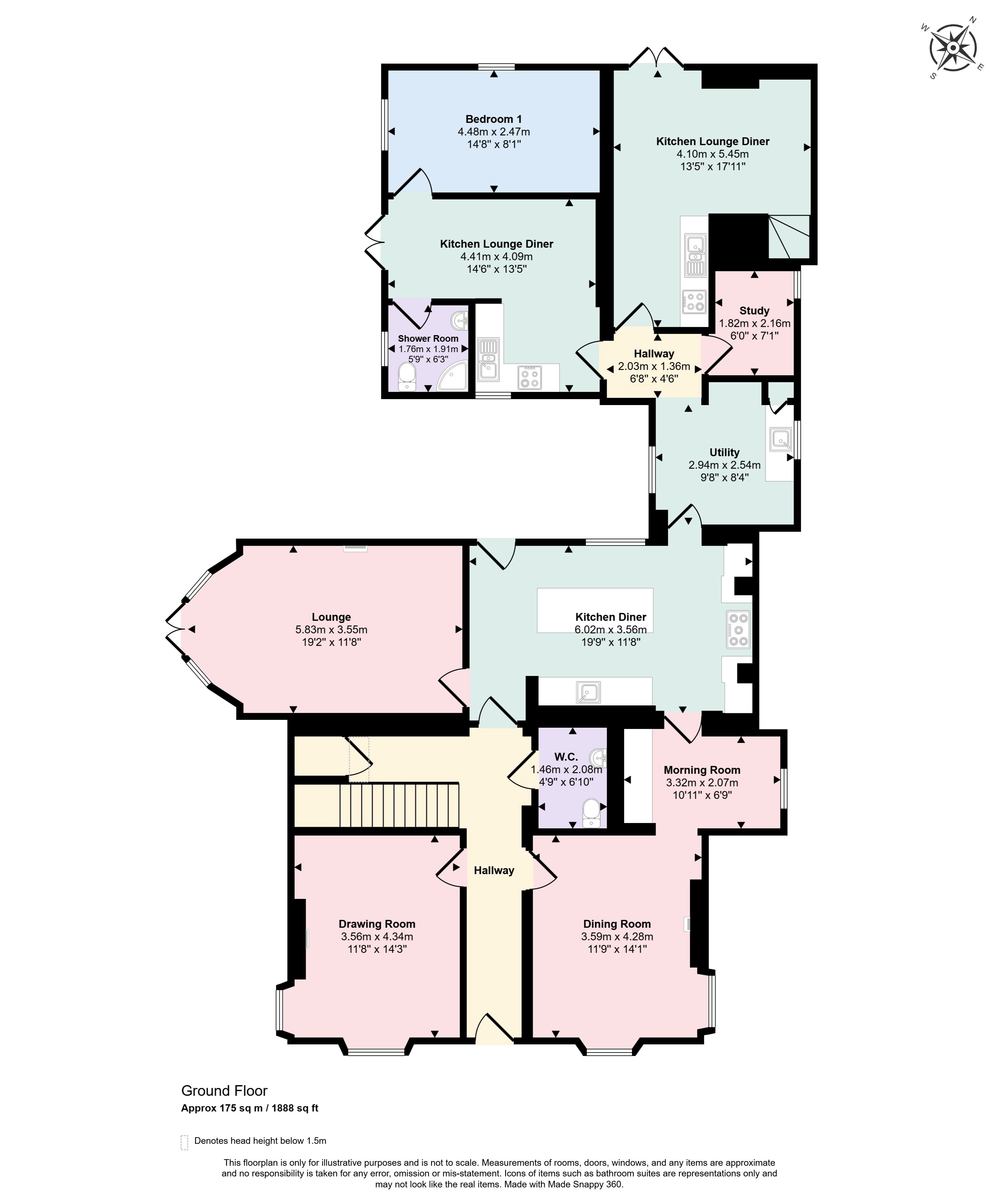 Ground Floor: Entrance Hallway, three reception rooms, snug, kitchen breakfast room, utility room, office