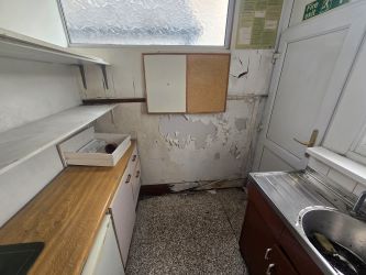 The property comprises a ground floor commercial unit with a store room, toilet and kitchen. The first floor offers three additional rooms.