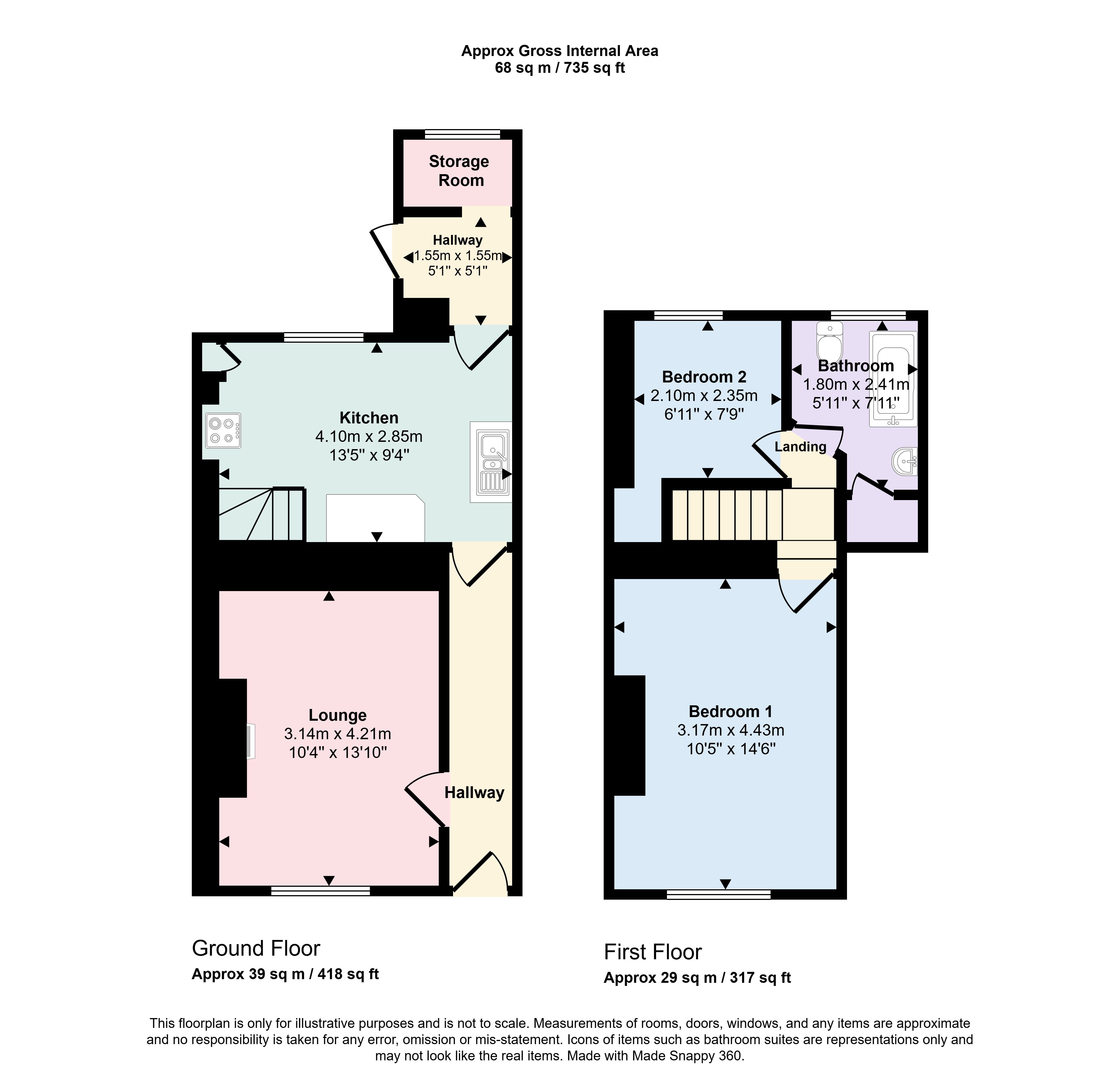 The ground floor offers lounge and kitchen with the first floor offering two bedrooms and bathroom.
