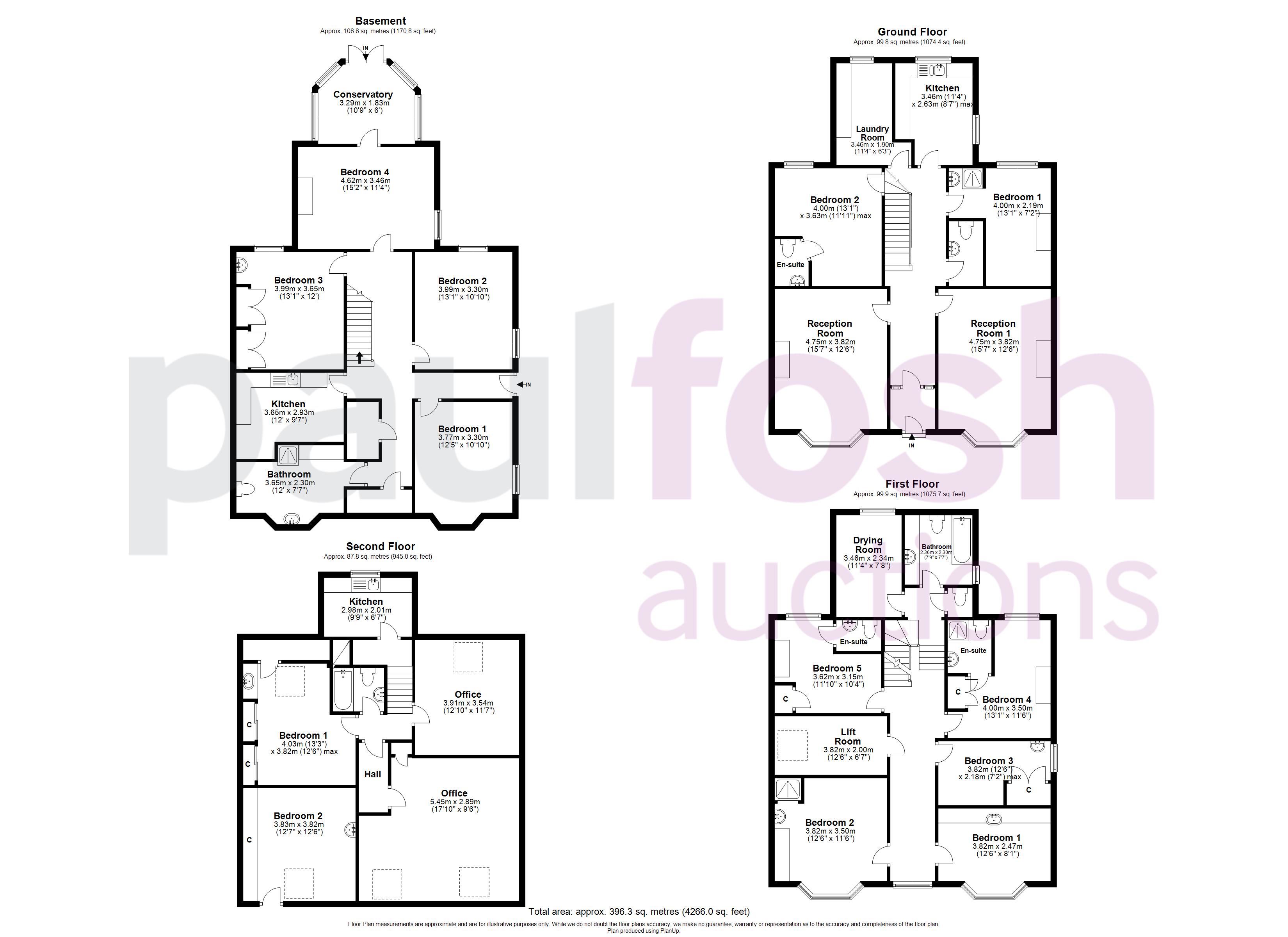 Lower GF: Separate entrance, hallway, 4 reception rooms, kitchen, bathroom, conservatory,