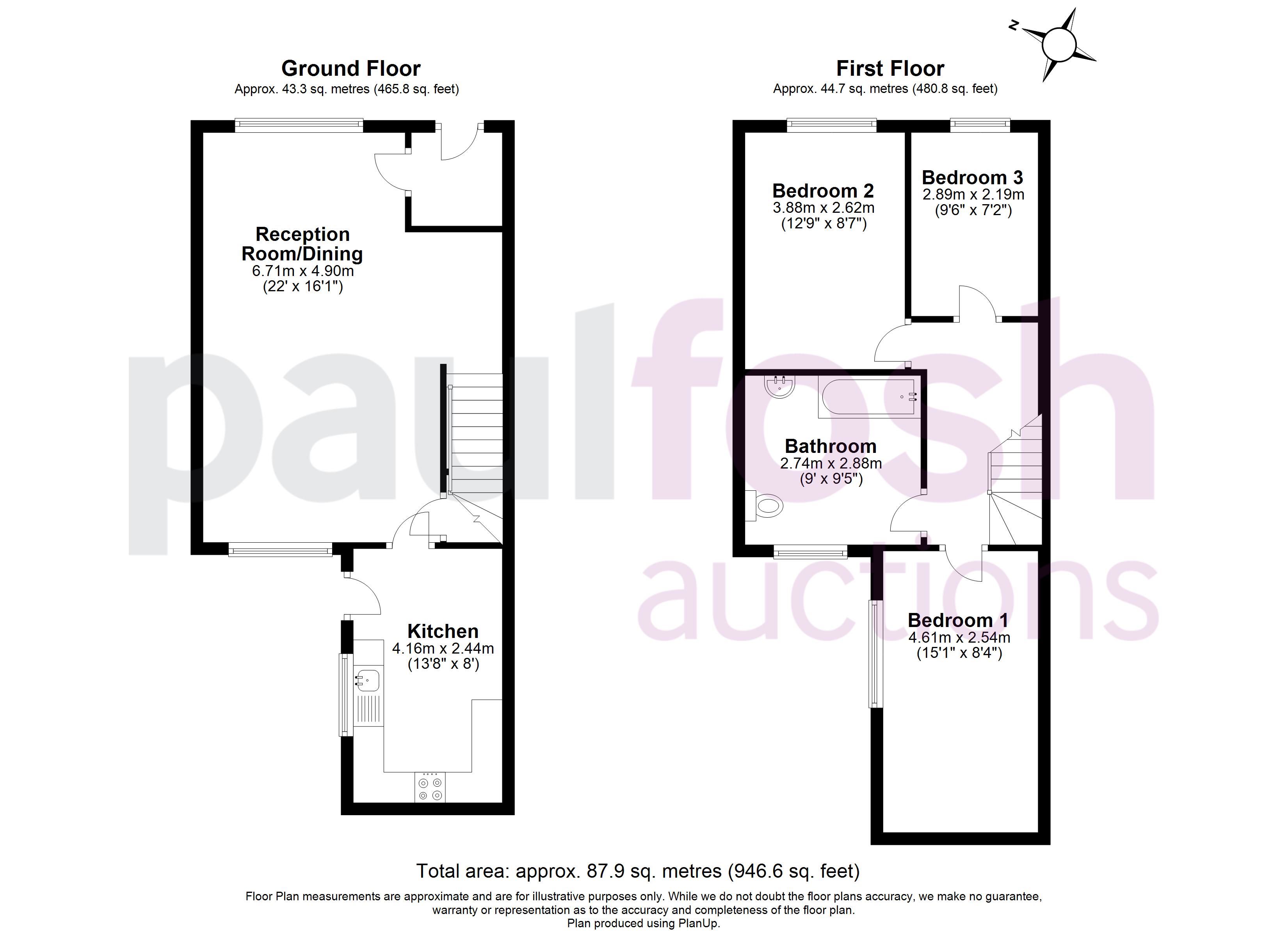 Ground Floor: Entrance hallway, living/dining room, kitchen