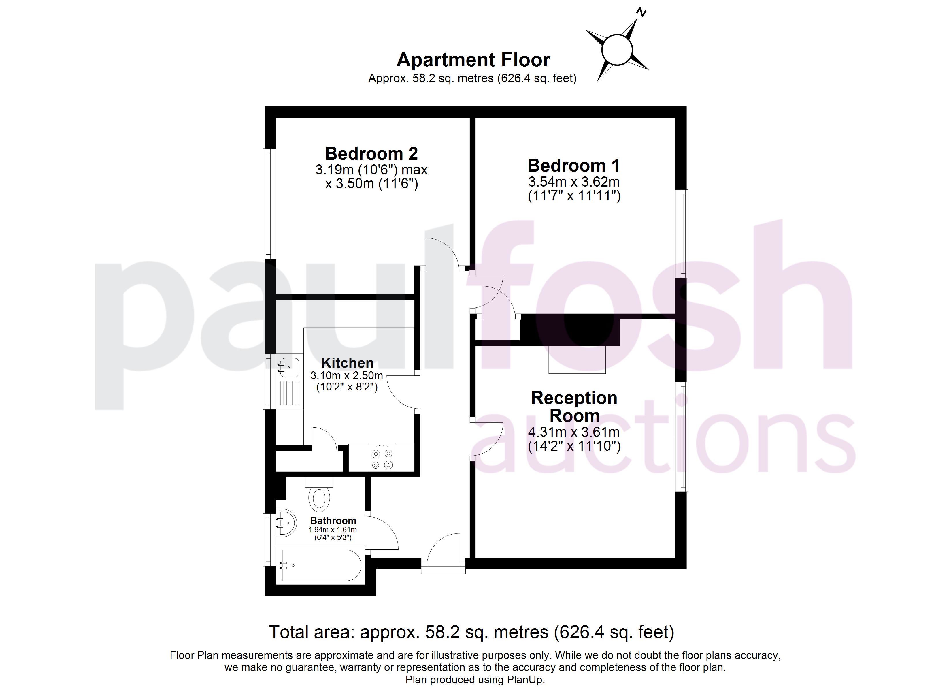 Ground Floor: Communal entrance, entrance hallway, living room, kitchen, bathroom, 2 bedrooms