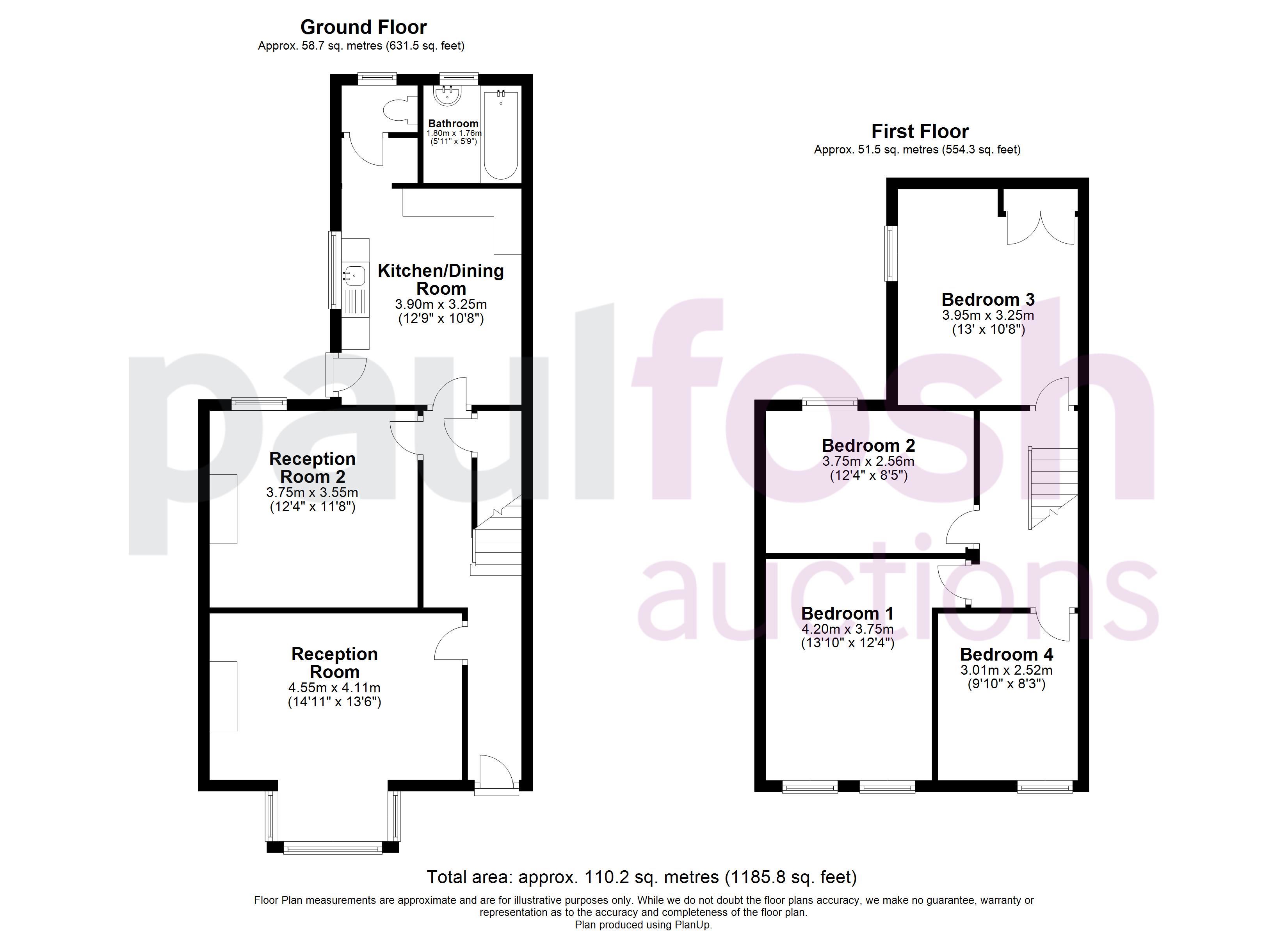 Ground Floor: Entrance, 2 reception rooms, kitchen, bathroom
