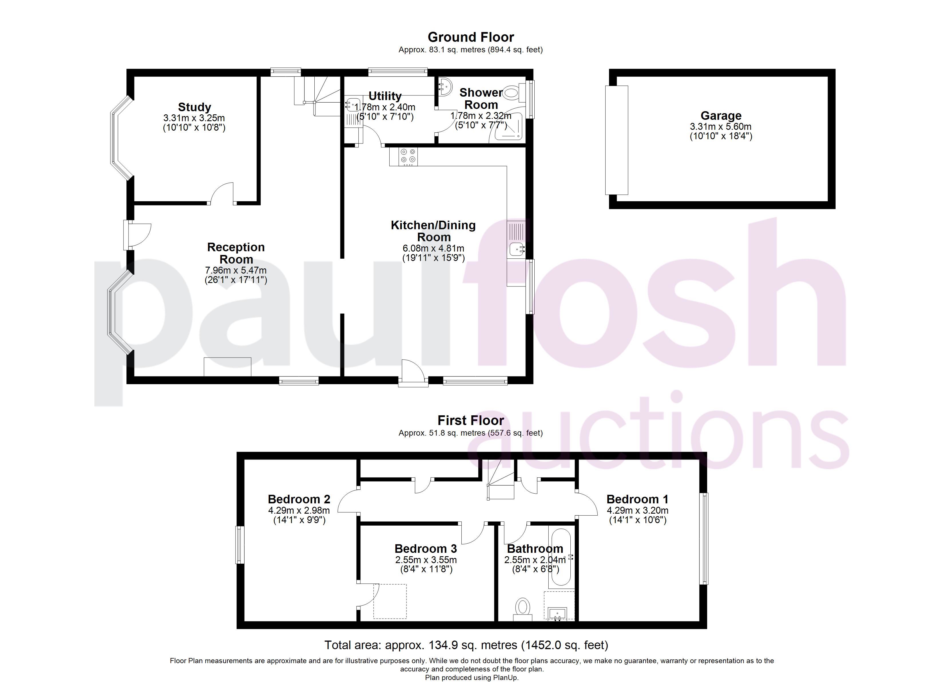 First Floor: Landing, 3 bedrooms, bathroom, storage cupboards