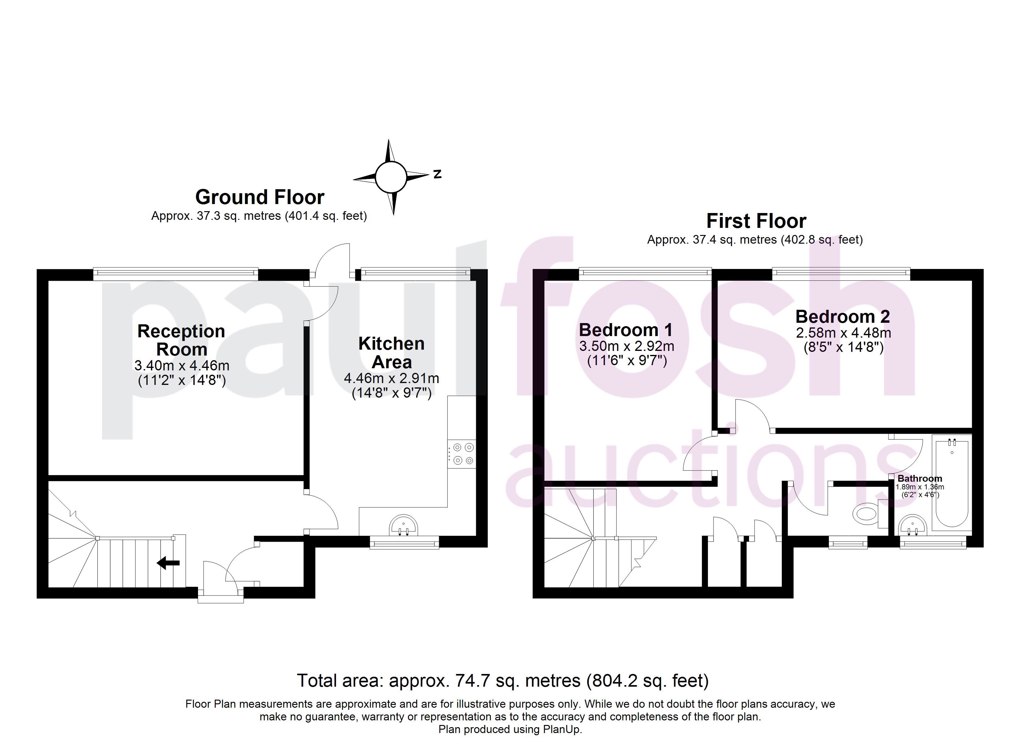 First Floor: 2 bedrooms, bathroom