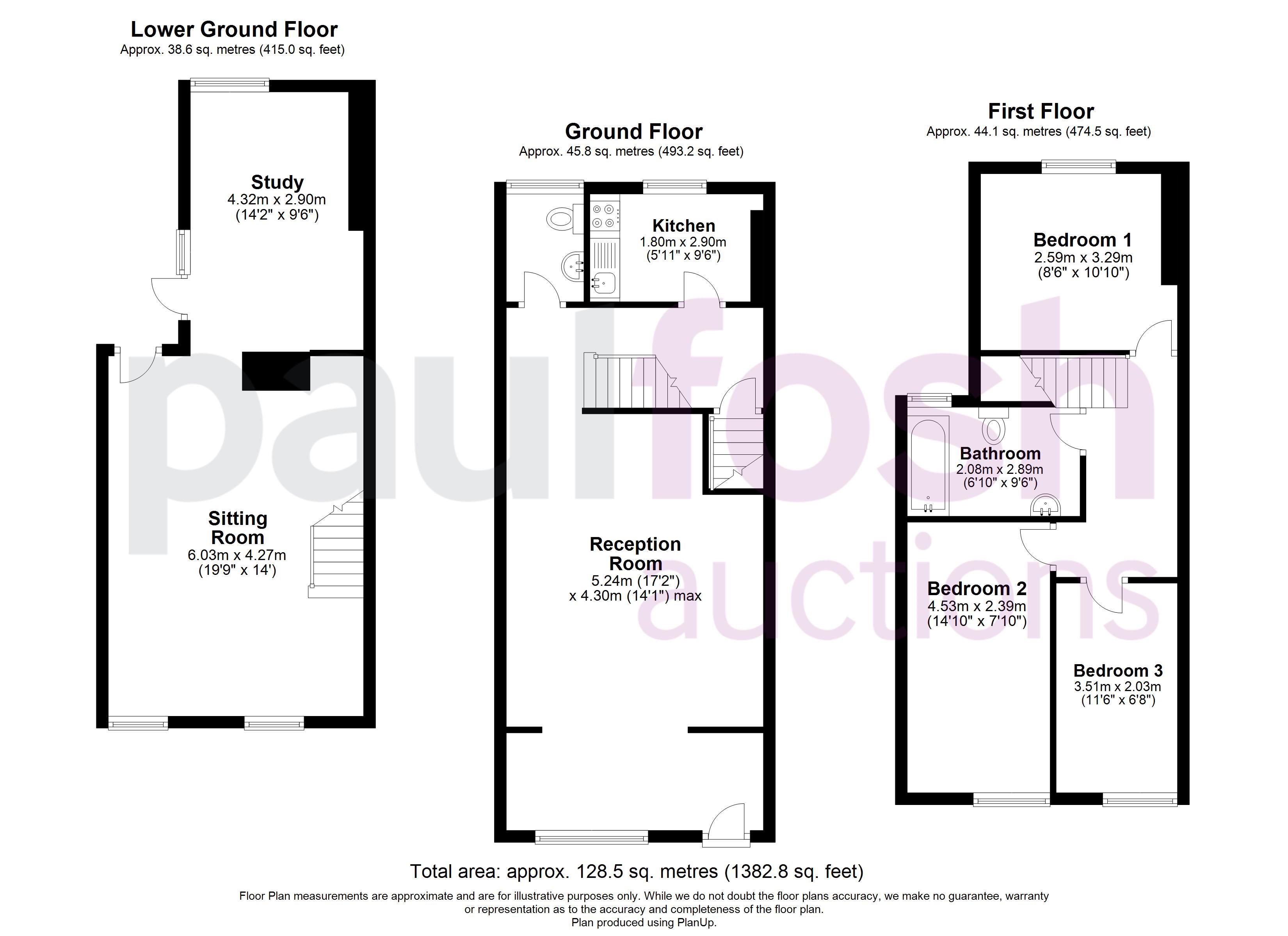 First Floor: Landing, bathroom, 3 bedrooms