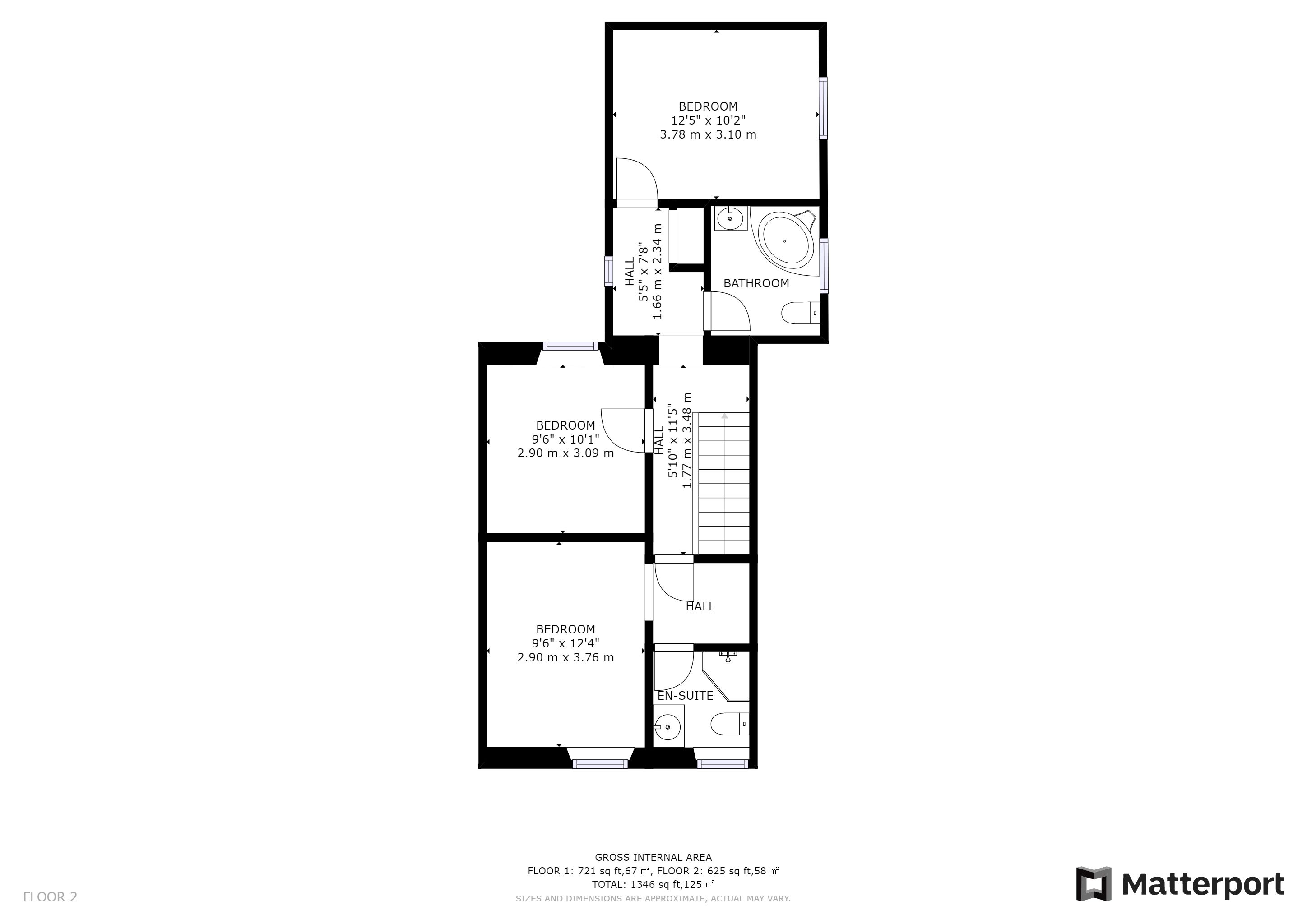 First Floor: Landing, 3 bedrooms, 2 bathrooms