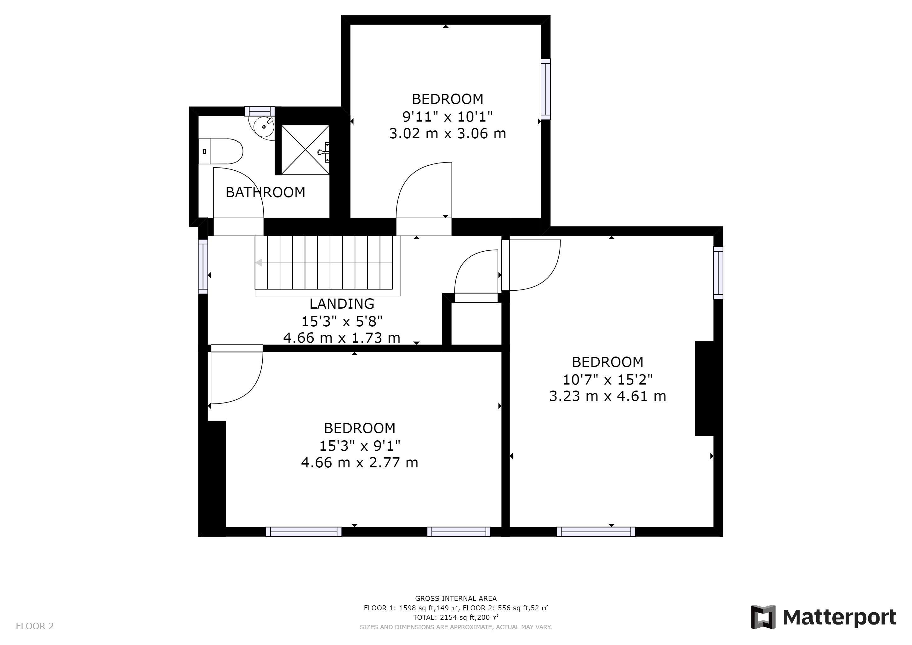 First Floor: Landing 3 rooms, shower room/wc