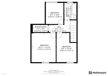 First Floor: 3 bedrooms, bathroom