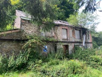 An opportunity to acquire a derelict three bedroom detached farmhouse together with garage set in approximately 19 acres of land.