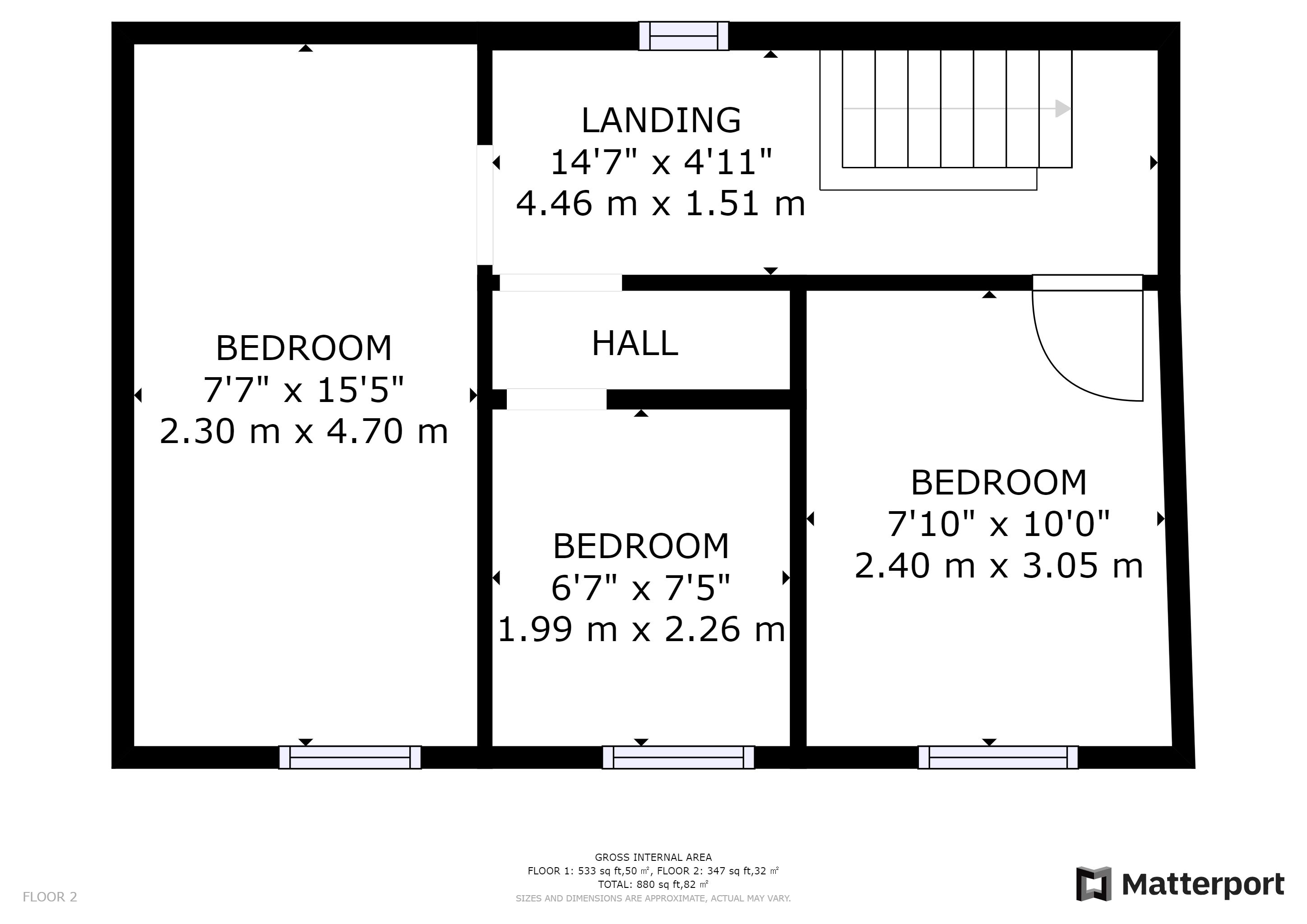 First Floor: Landing, 2 bedrooms, study/office