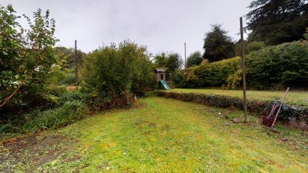 Outside: Extensive rear garden with former Apple shed (that previously had planning for conversion to bedroom) and court yard area