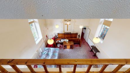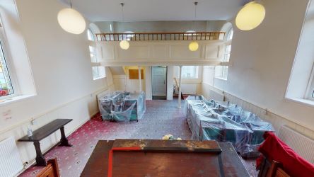 Ground Floor: Entrance, stairs to balcony, church area, rear meeting room/ kitchen, disabled wc