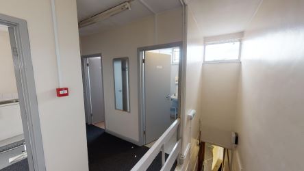 First Floor: Landing, male and female wcs, kitchenette/office area
