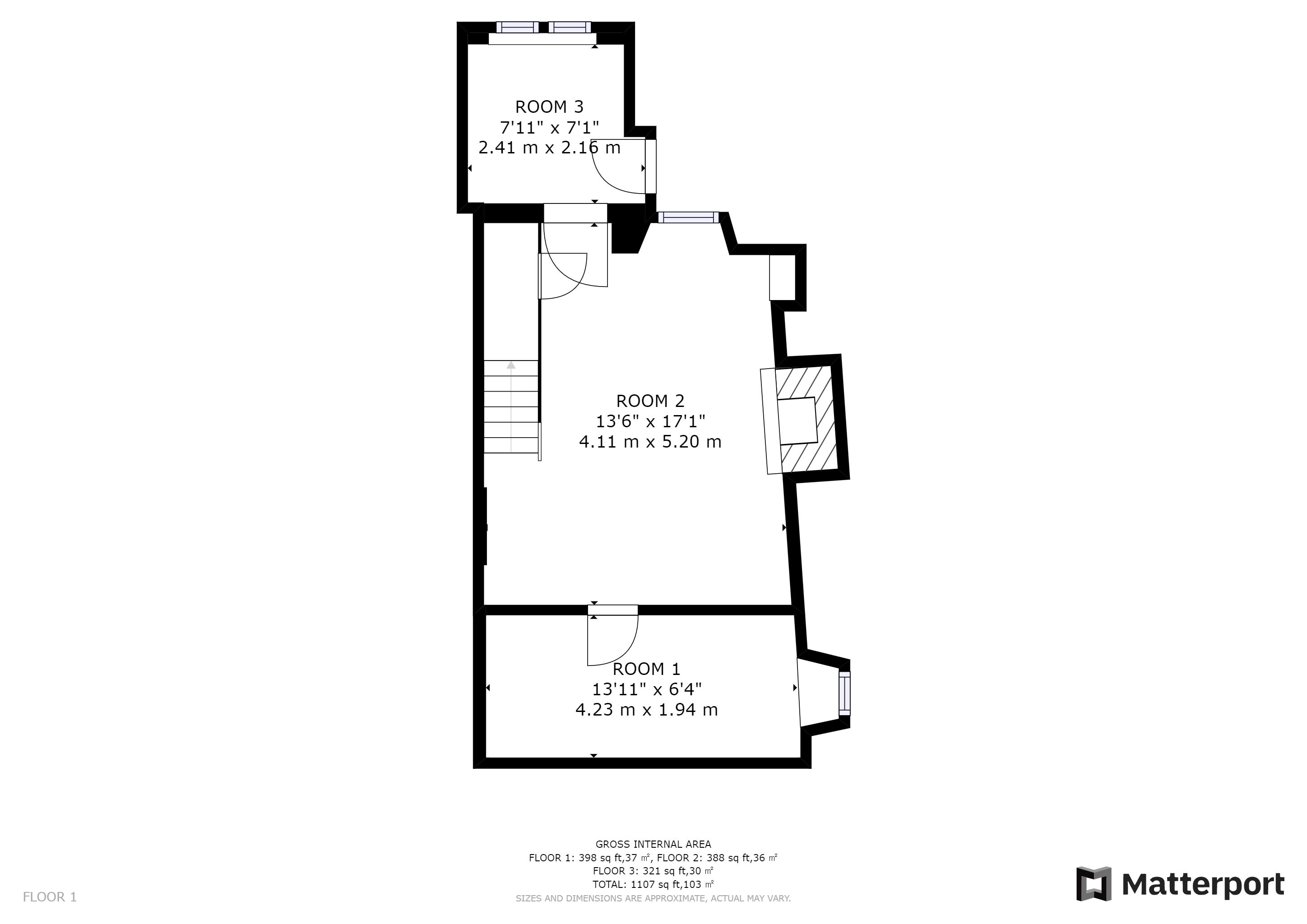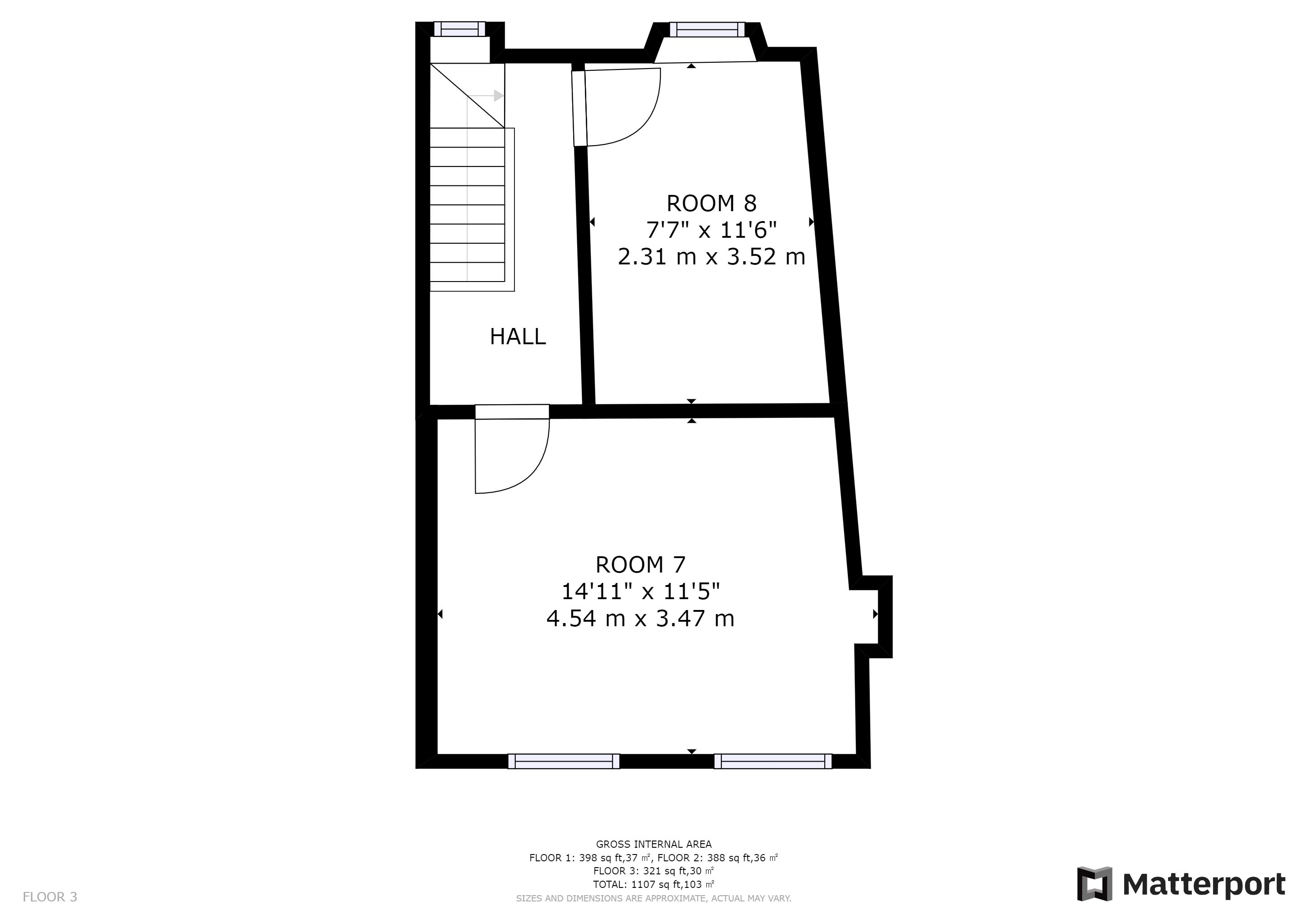 First Floor: 2 former bedrooms
