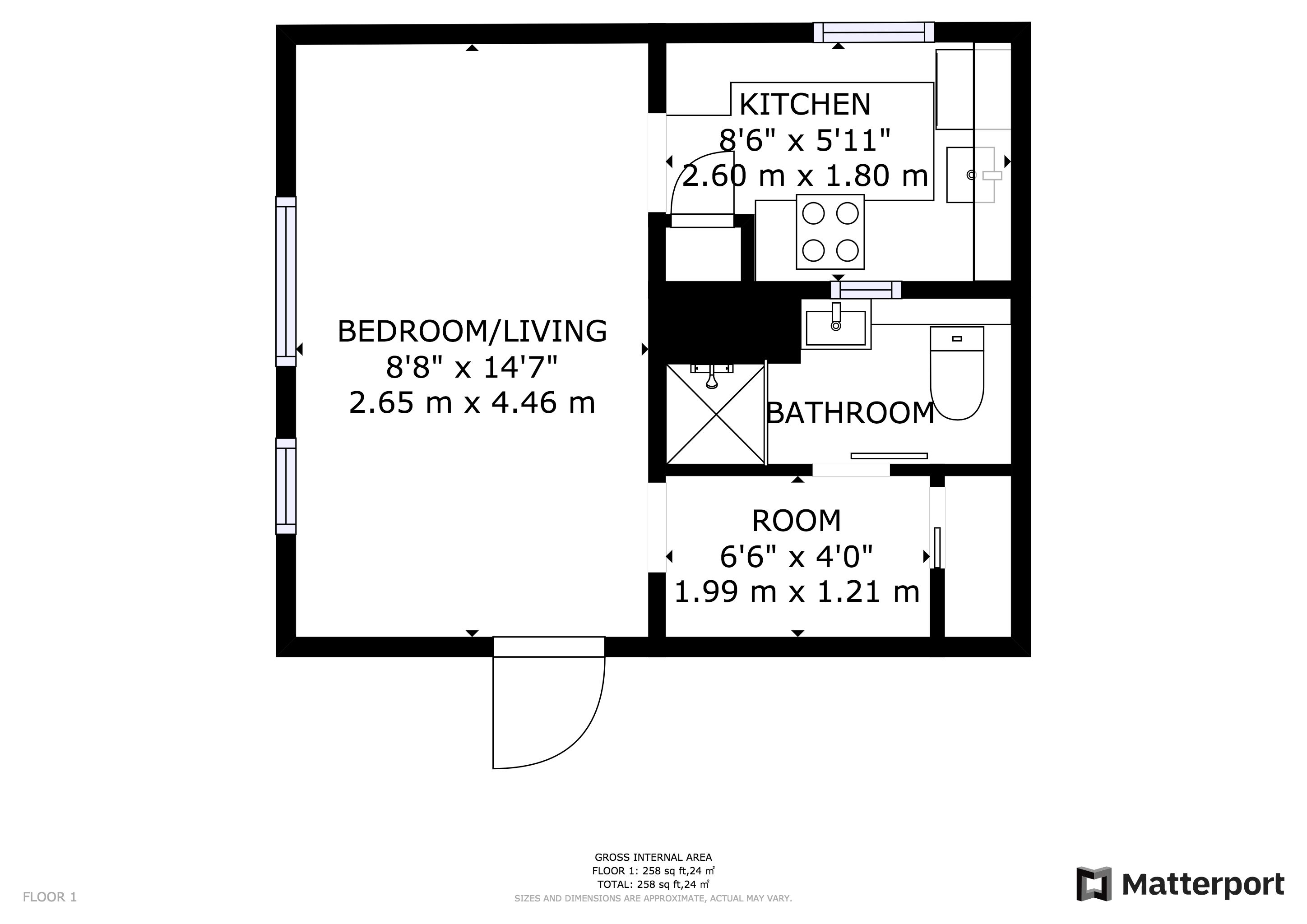 Lounge/bedroom, kitchen, inner hall, storage and shower room/wc