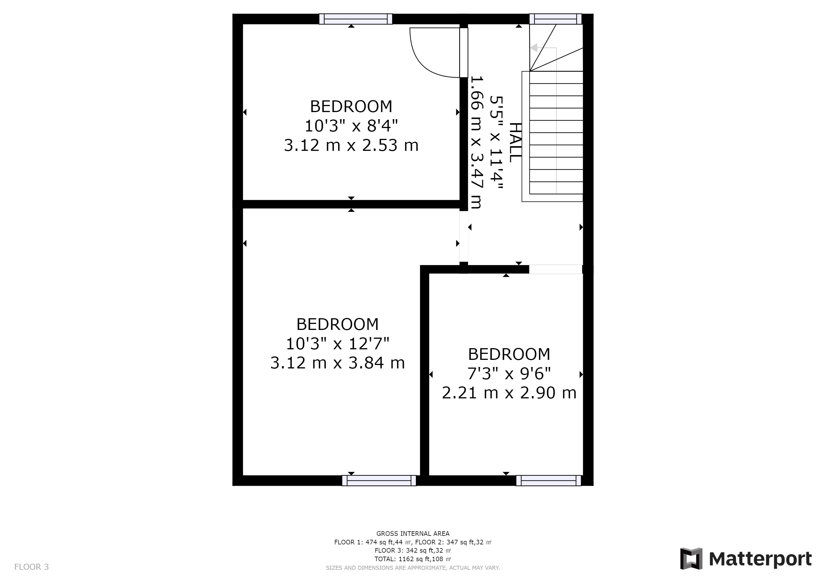 First Floor: Landing, 3 bedrooms